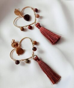 | Aretes de corazon antorchado con piedras naturales y borlas