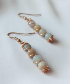 Aretes de Piedra natural pequeña, antorchados en alambrismo. Gancho en acero