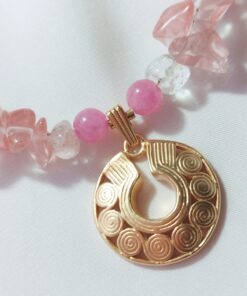 Collar de Piedras naturales de Cuarzo Cherry – Dije Precolombino de Nariguera Semilunar Tairona