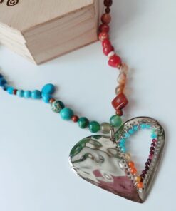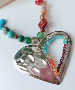 Collar en Piedras naturales – con Dije de Corazón tejido con piedras