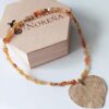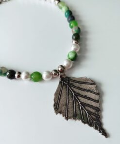 Collar en Piedras naturales de Ágatas facetadas y Perlas Shell – con Dije de hoja plateada