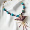 Gargantilla en Perlas Shell – con Dije de Colibrí tejido a mano por indígenas del Putumayo.