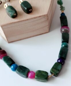 Juego de Collar y aretes en Piedras naturales de Ágatas facetadas y Jade