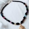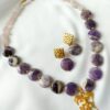 Juego de Collar y Aretes Precolombino en piedras naturales de Ojo de Tigre y Howlite – Dije de Colgante Martillado de la cultura indígena de Nariño.
