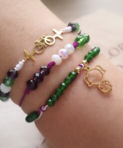 PULSERA DE HILO CON MURANOS DE CRISTAL -DIJE O SEPARADOR DE ACERO