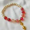 Pulsera en Perlas Cultivadas y Ágatas azuladas – Dije Precolombino de Rana de Trenza Tairona
