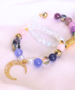 PULSERA EN PIEDRA NATURAL Y MURANOS DE CRISTAL – DIJE DE LUNA